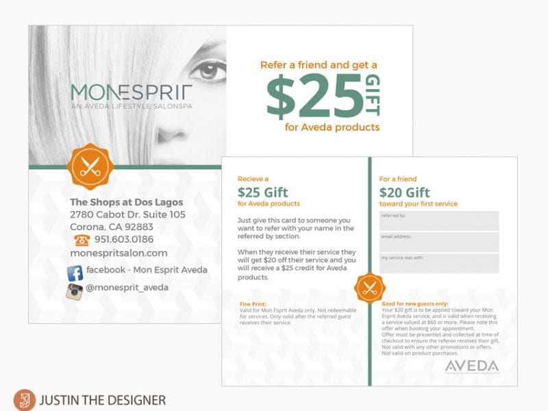 graphic design, hair salon graphics, hair salon menu, hair salon pricing card, menu design, monesprit salon